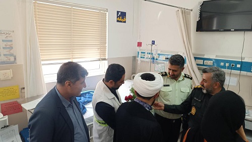 بازدید فرمانده و پرسنل نیروی انتظامی شهرستان سروستان از بیمارستان شهدای سروستان به مناسبت روز نیروی انتظامی